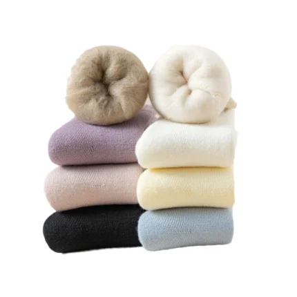 Women’s Soft Comfortable Anti-Bacterial Thick Warm Cashmere Terry Wool Socks for Autumn and Winter Fashionable Solid Color