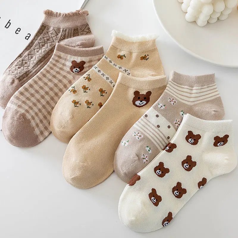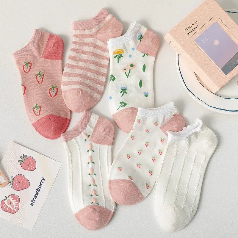 Japanese Style Embroidery Love Solid Color Thin Mesh Women Cotton Summer Boat Socks Girl Sport Ankle Socks