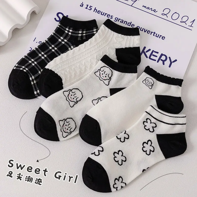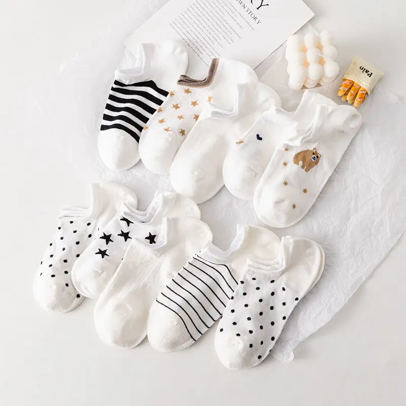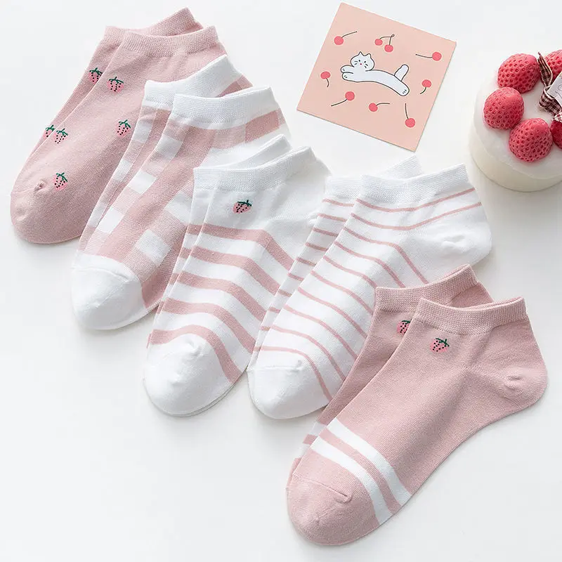 Japanese Style Embroidery Love Solid Color Thin Mesh Women Cotton Summer Boat Socks Girl Sport Ankle Socks