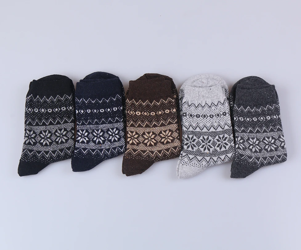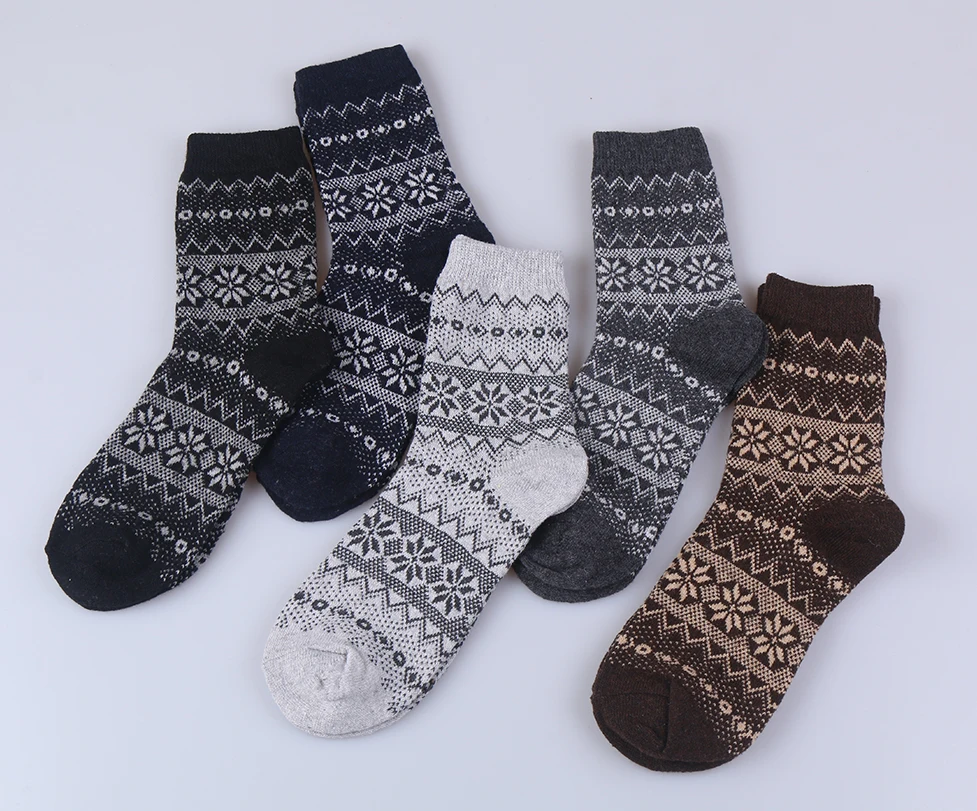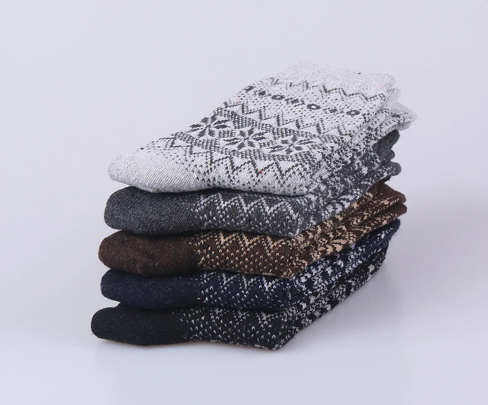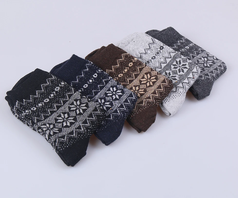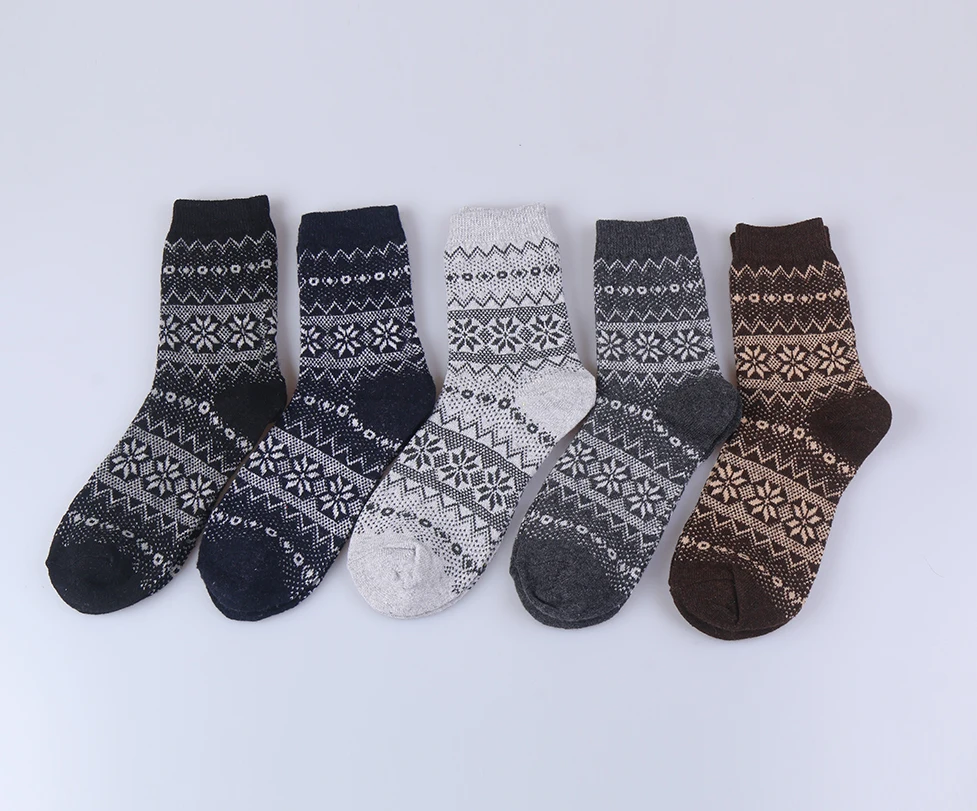 Men’s Casual Winter Wool Socks Warm Thick Cotton Crew Socks with Logo at Bottom
