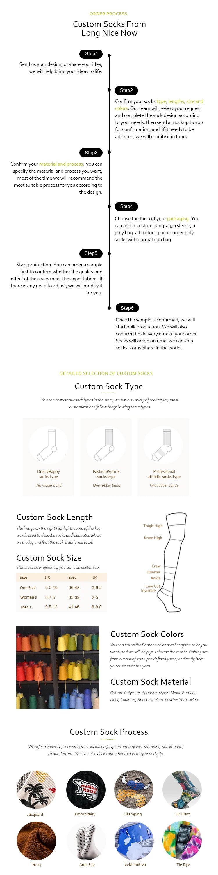 In fact, it depends on the craftsmanship of the socks, if you want jacquard or embroidery socks, the MOQ is 50 pairs, per size/design/color. If you want to make grip socks, the MOQ will increase, but if you just want to add a logo to our stock socks, mixed sizes and colors will be allowed.