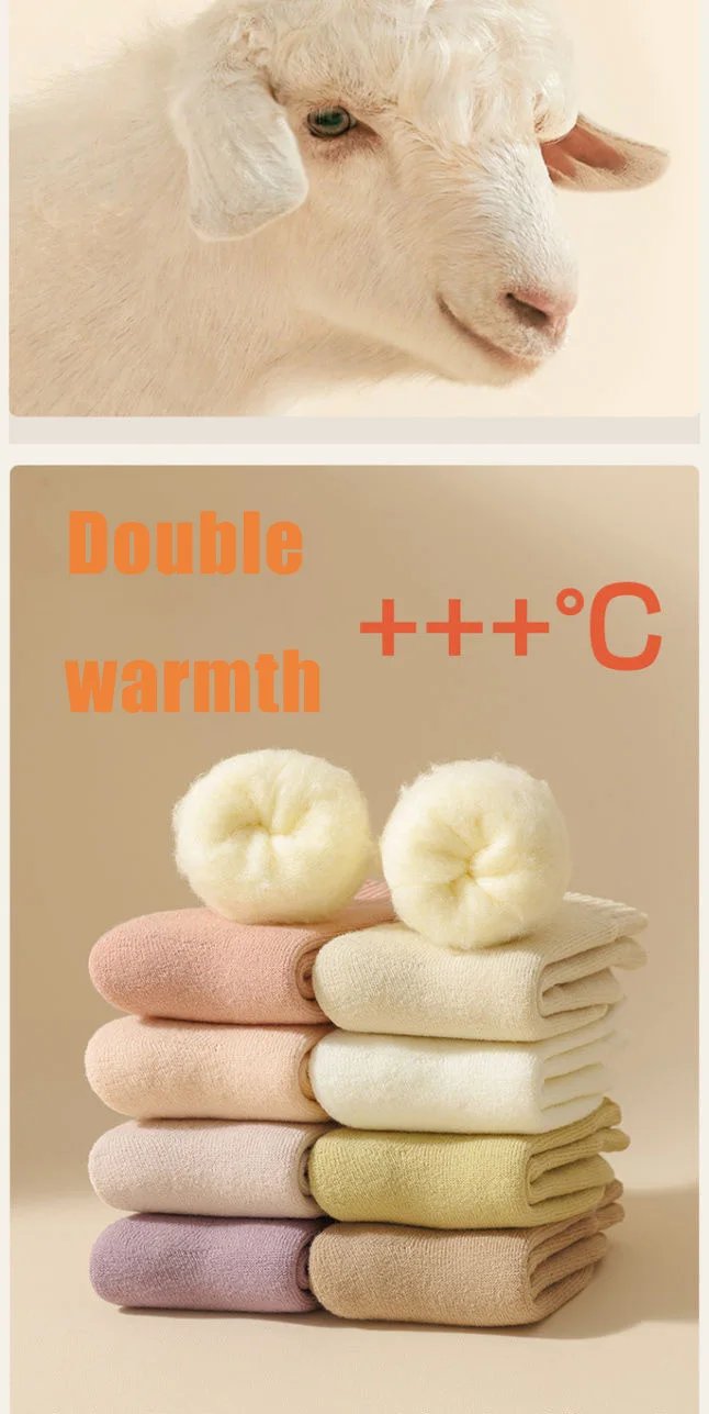 Women’s Soft Comfortable Anti-Bacterial Thick Warm Cashmere Terry Wool Socks for Autumn and Winter Fashionable Solid Color