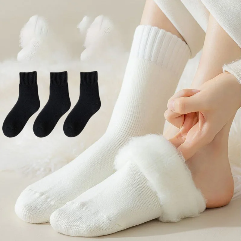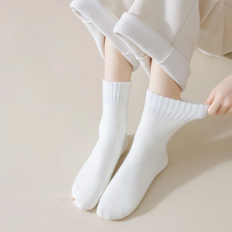 Women’s Soft Comfortable Anti-Bacterial Thick Warm Cashmere Terry Wool Socks for Autumn and Winter Fashionable Solid Color